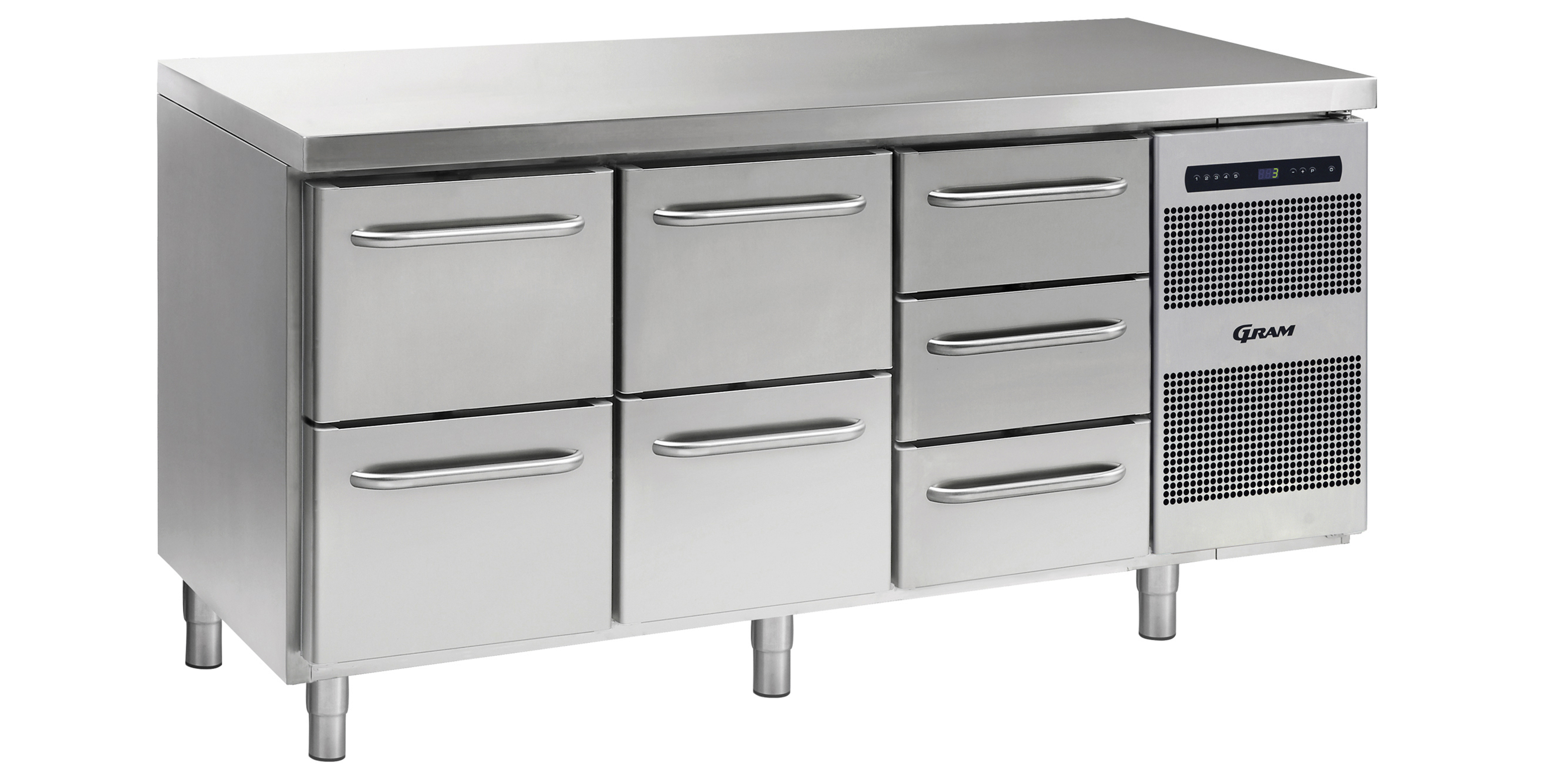 La gamme de comptoirs GRAM GASTRO 07 vous aide à agencer votre espace de travail. Choisissez parmi une combinaison de plans de travail, portes ou tiroirs, sur pieds, roulettes avec une élévation électrique, plusieurs plages de températures et des accessoires pratiques et complémentaires.