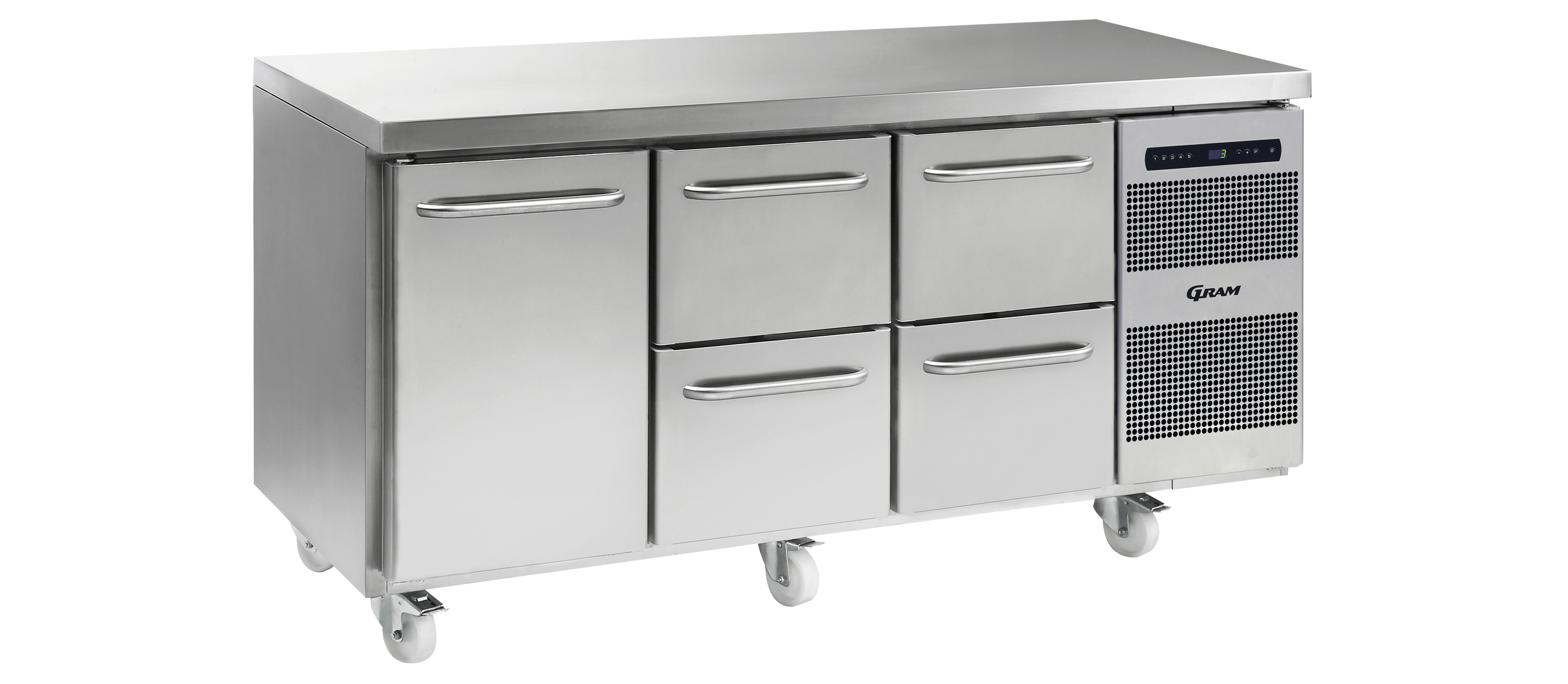 La gamme de comptoirs GRAM GASTRO 07 vous aide à agencer votre espace de travail. Choisissez parmi une combinaison de plans de travail, portes ou tiroirs, sur pieds, roulettes avec une élévation électrique, plusieurs plages de températures et des accessoires pratiques et complémentaires.