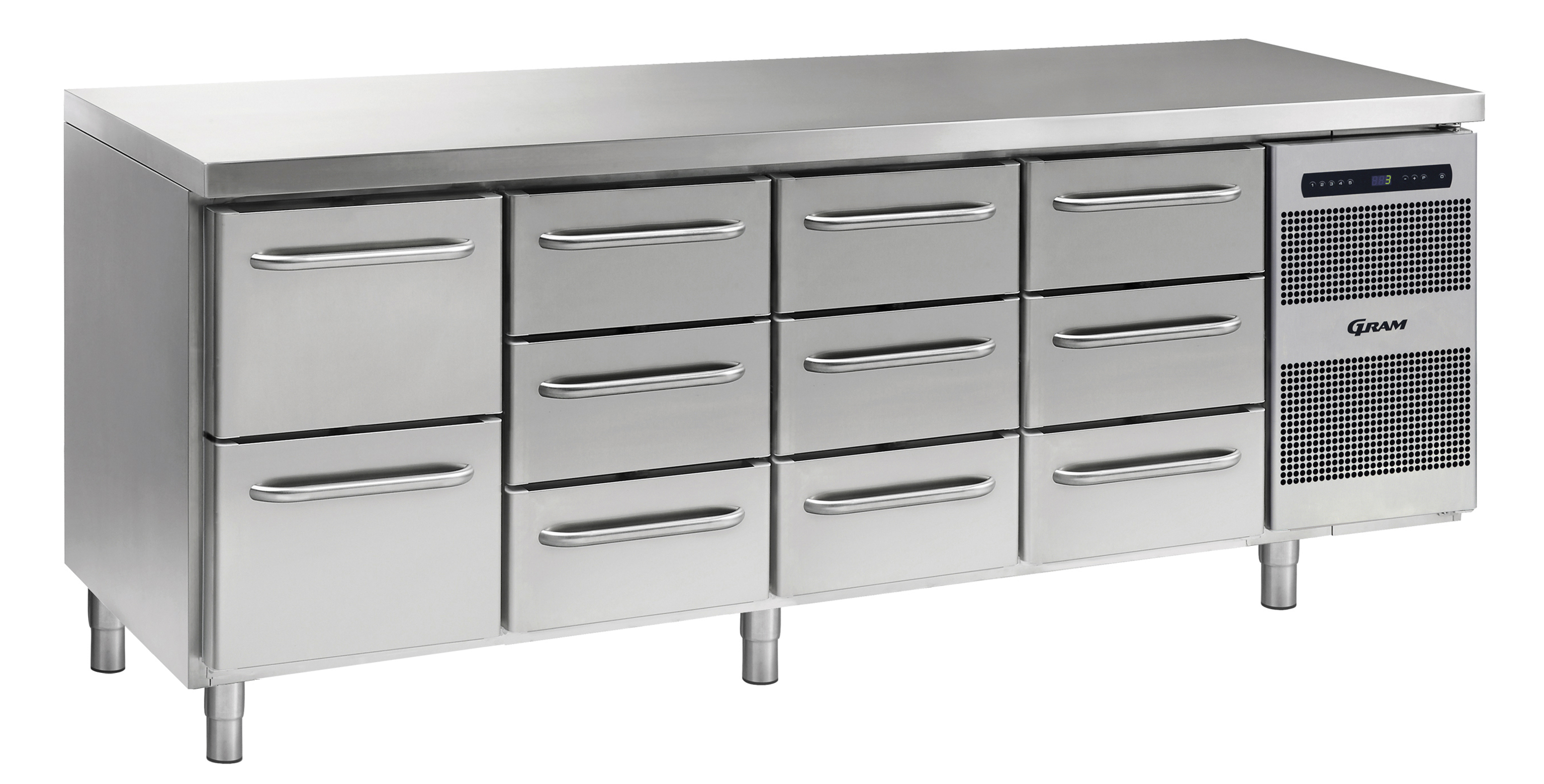 La gamme de comptoirs GRAM GASTRO 07 vous aide à agencer votre espace de travail. Choisissez parmi une combinaison de plans de travail, portes ou tiroirs, sur pieds, roulettes avec une élévation électrique, plusieurs plages de températures et des accessoires pratiques et complémentaires.