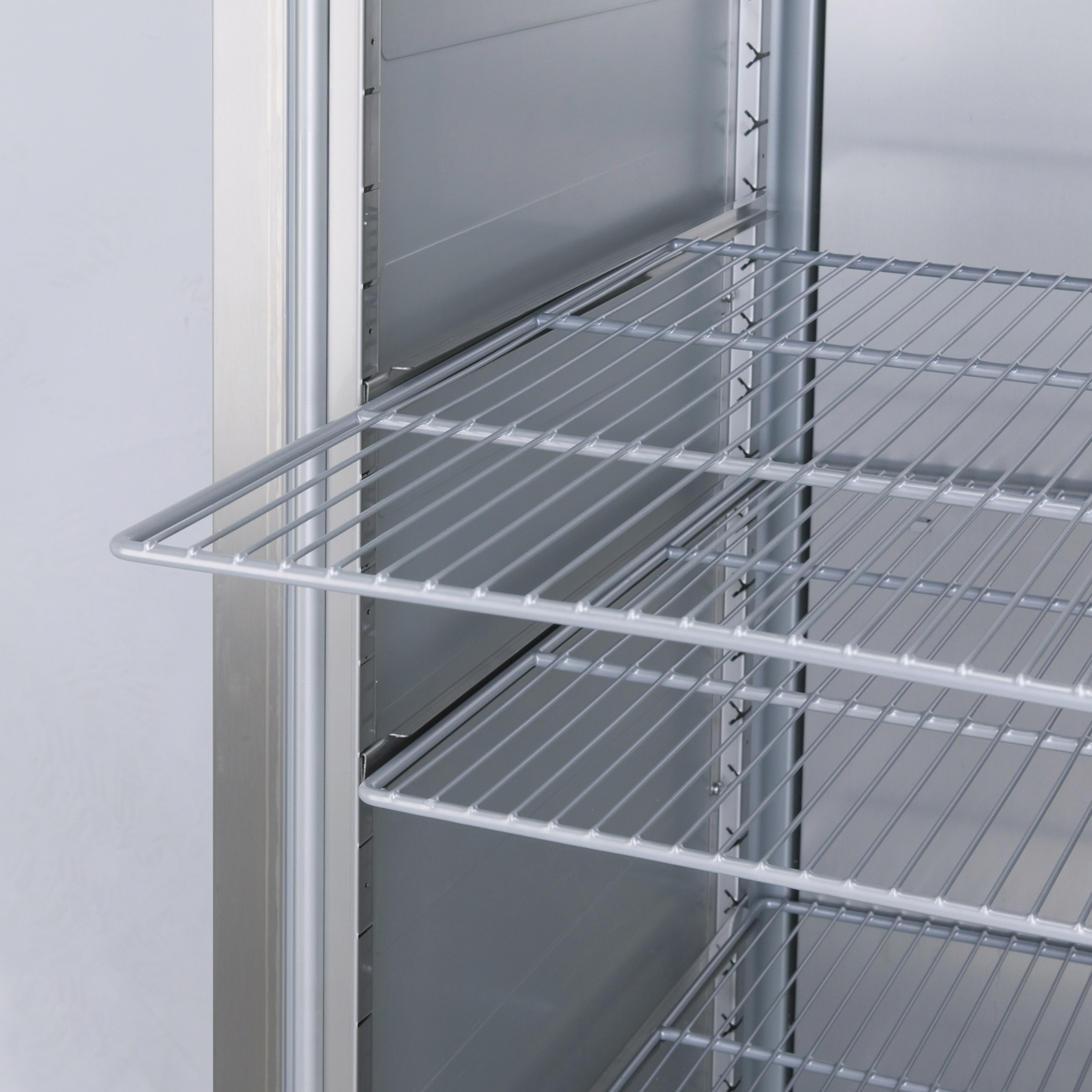 Die GRAM COMPACT Serie bietet eine besondere Kombination: Diese Schränke sind lebensmittelecht, platzsparend und verfügen über hervorragende Energiewerte in ihrer Klasse. Mit einer Grundfläche von nur 59,5 x 64 cm sind diese kleinen Lagerschränke einfach einzubauen, besonders wenn der Platz begrenzt ist. Diese Spezifikationen machen die Serie zu einer so beliebten Wahl bei Nutzern, die keine robuste Gastronorm-Ausrüstung benötigen.