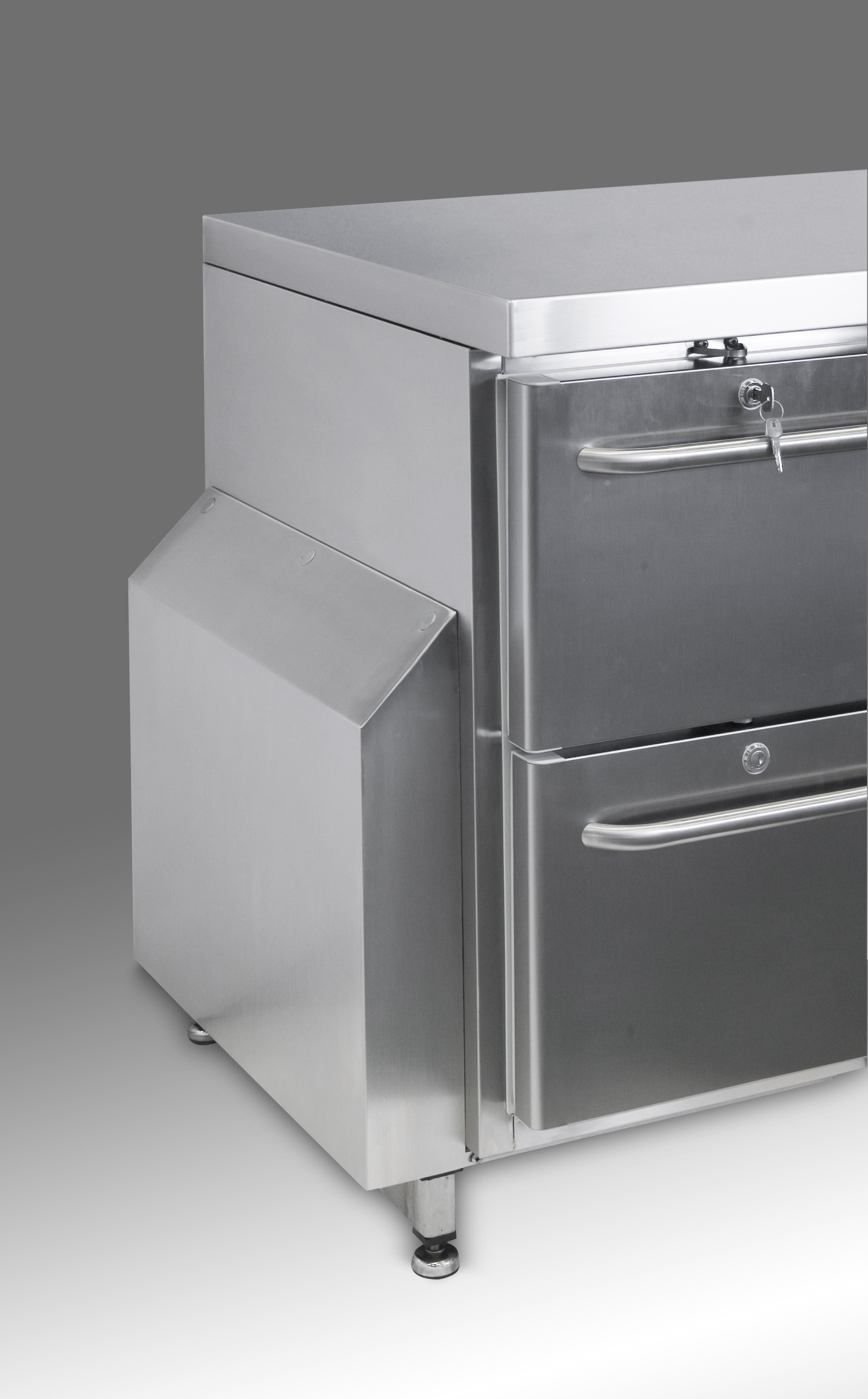 | Ausgestattet mit | Stainless steel solid top, 3 door sections each with 2 stainless shelves |