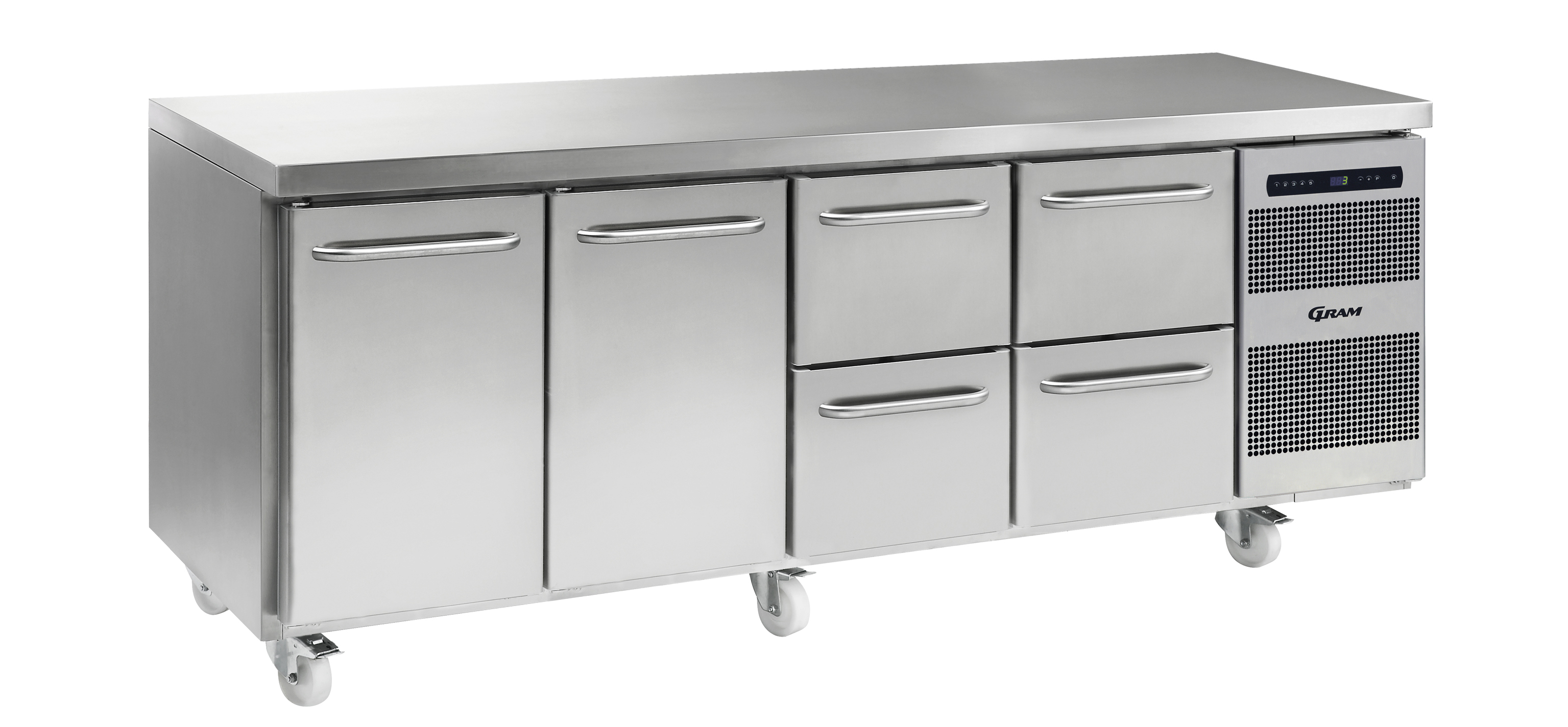 Mit GRAM GASTRO 07 Kühltischen können Sie Ihren individuellen Arbeitsplatz zusammenstellen. Wählen Sie Ihre Kombination aus Arbeitsplatte, Türen und Schubladen, Beinen / Rollen / elektrischer Höhenverstellung, Temperaturbereichen und Zubehör.