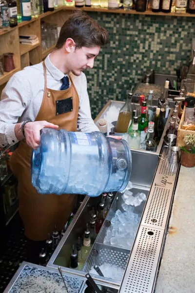At the Tiger the staff sends away at least 300 to 450 cocktails between Friday and Saturday nights. This requires a constant ice production flow. The installation of cube ice and flake ice machines on one bin is the perfect combination.