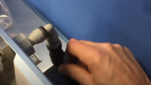 …and fill in your sodium hypochlorite solution. The liquid will rapidly run through the inside of the machine, thoroughly disinfecting the inner parts.