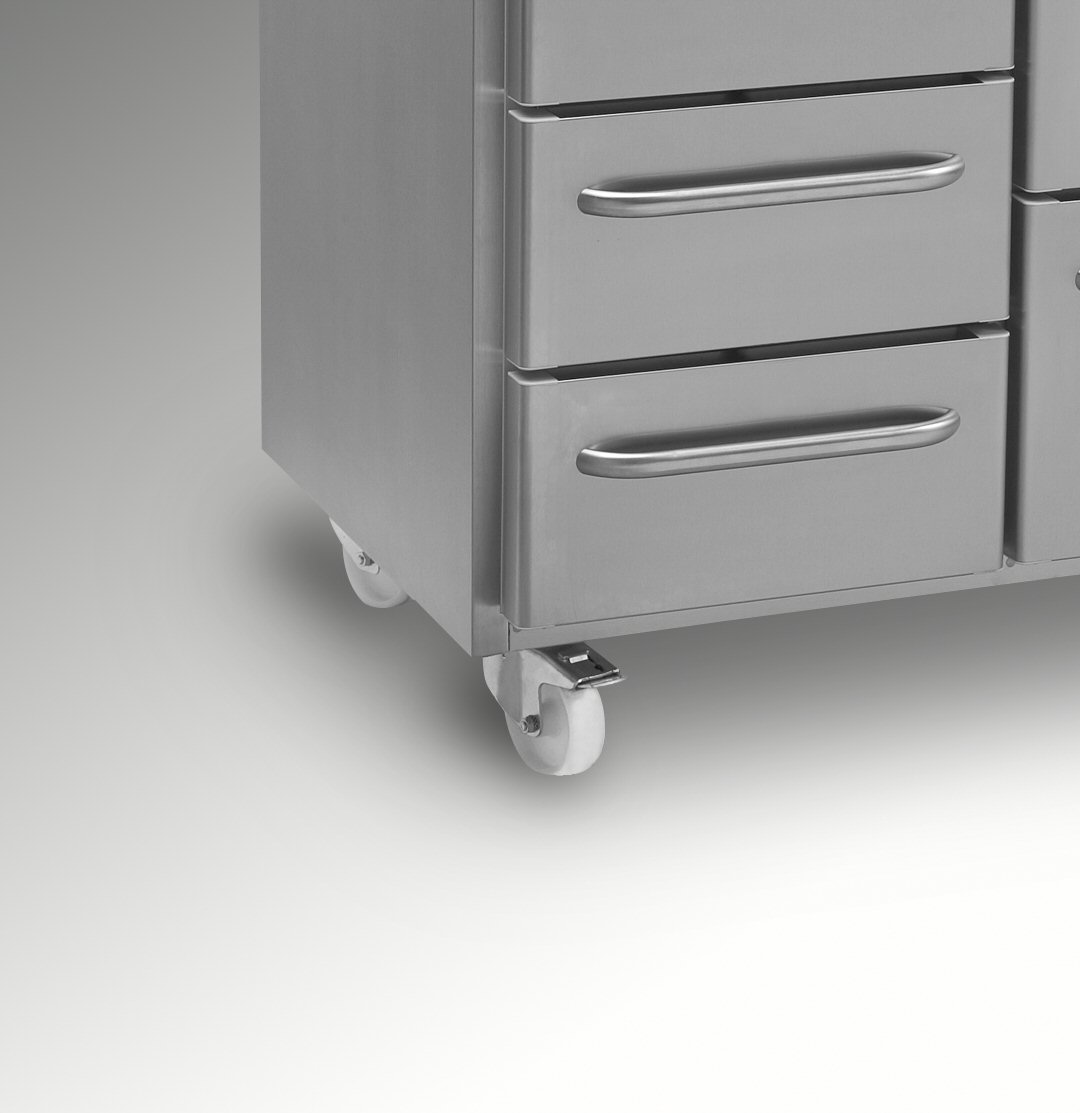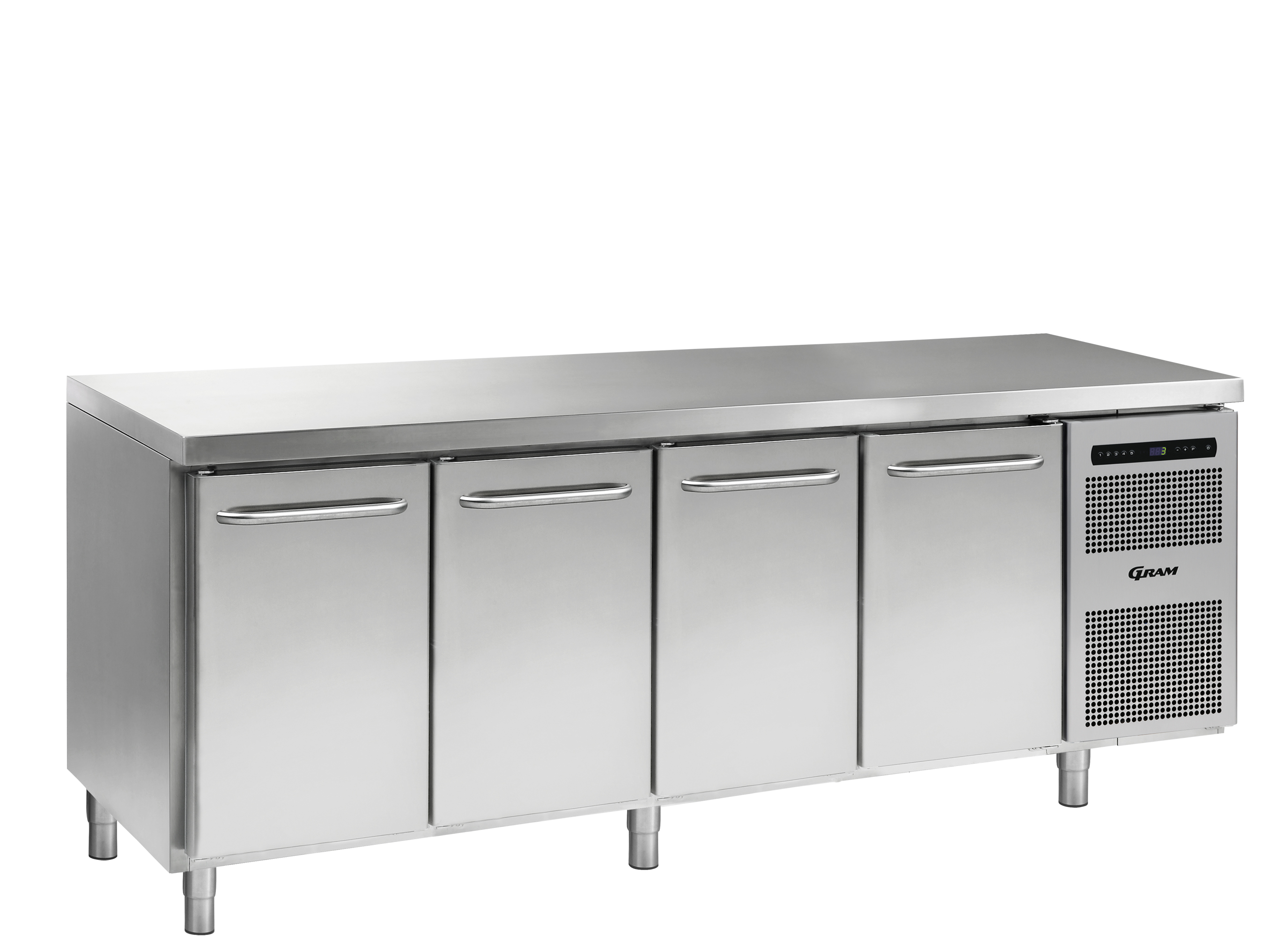 Med GRAM GASTRO 07 køleborde kan du bygge din egen arbejdsplads. Vælg din egen kombination af bordplade, døre og skuffer, ben eller hjul, elektrisk hæv/ sænk, temperaturområder og tilbehør.