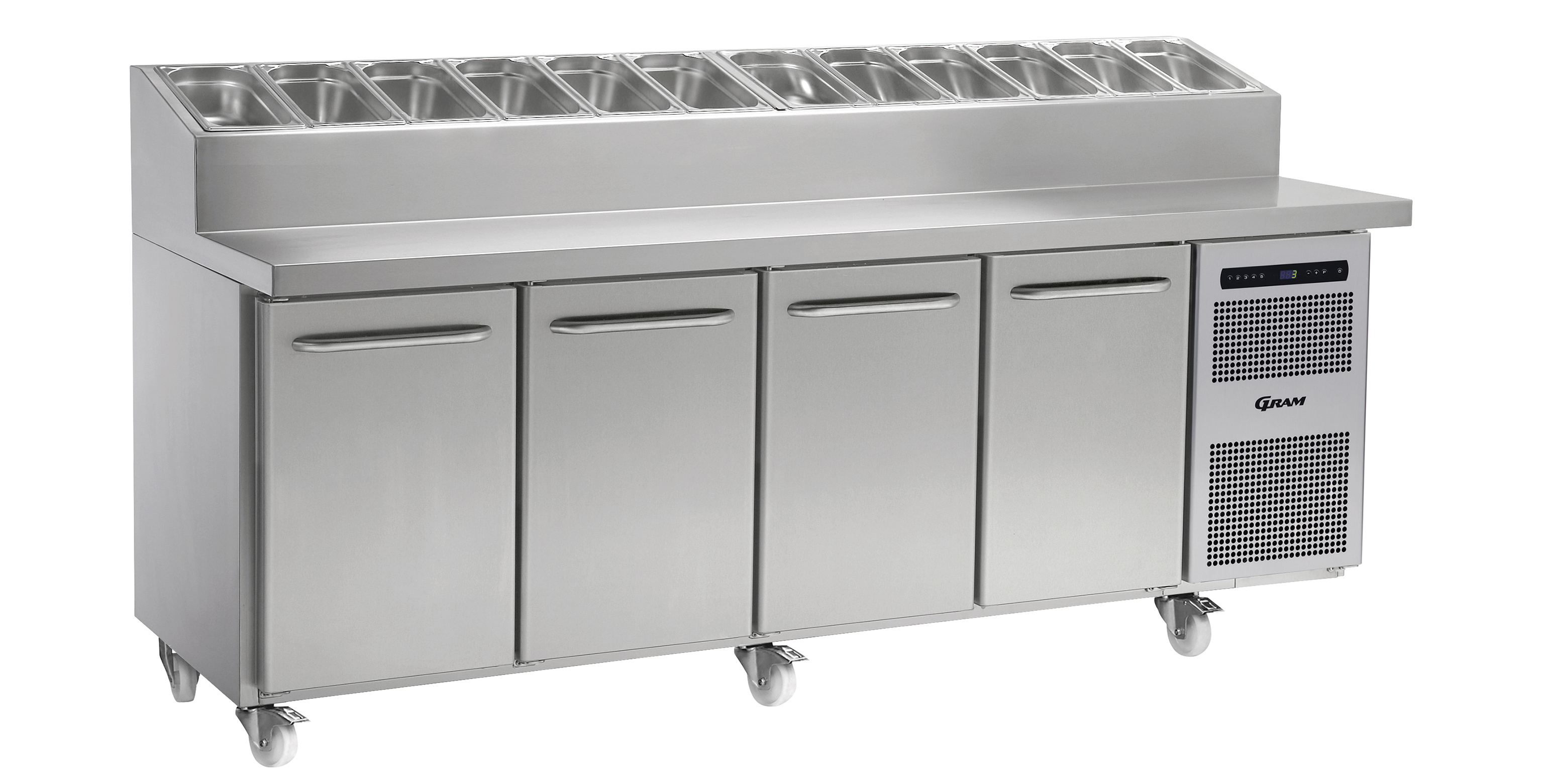 GRAM Gastro 07 es una serie de estaciones de trabajo 1/1 GN, equipadas con secciones personalizables. Además, ofrece un sinfín de posibilidades de configuraciones prácticas.