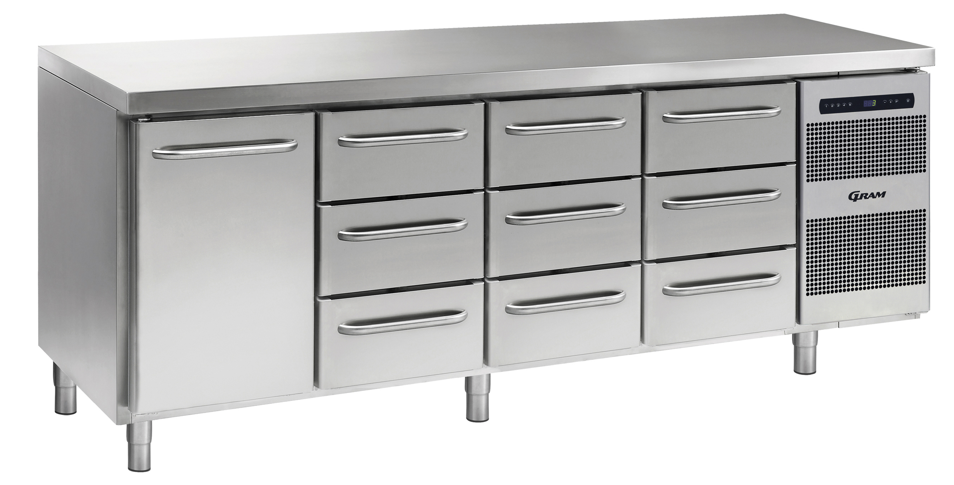 With GRAM GASTRO 07 counters you can put together your individual workplace. Choose your combination of worktop, doors, and drawers, legs /castors/electric elevation, temperature ranges and accessories.