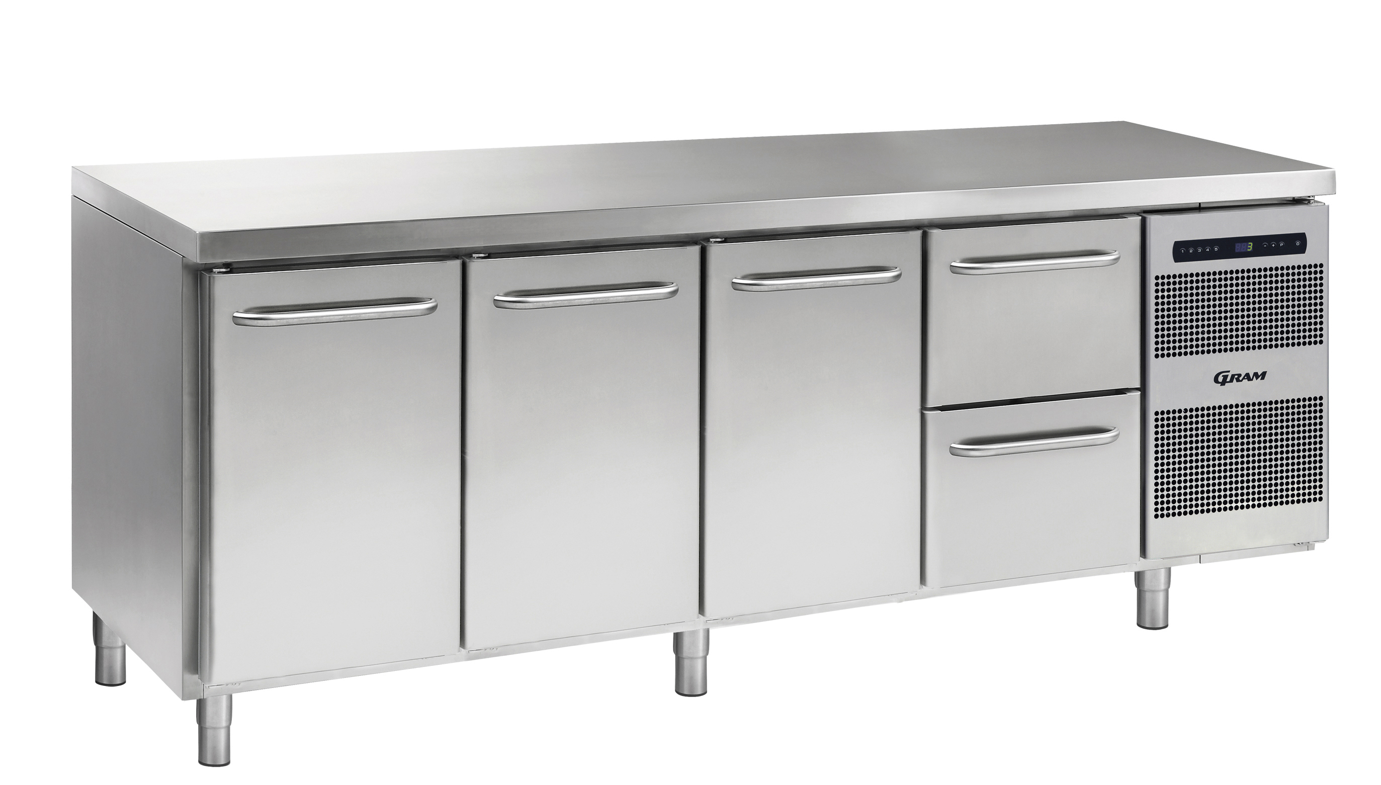 With GRAM GASTRO 07 counters you can put together your individual workplace. Choose your combination of worktop, doors, and drawers, legs /castors/electric elevation, temperature ranges and accessories.