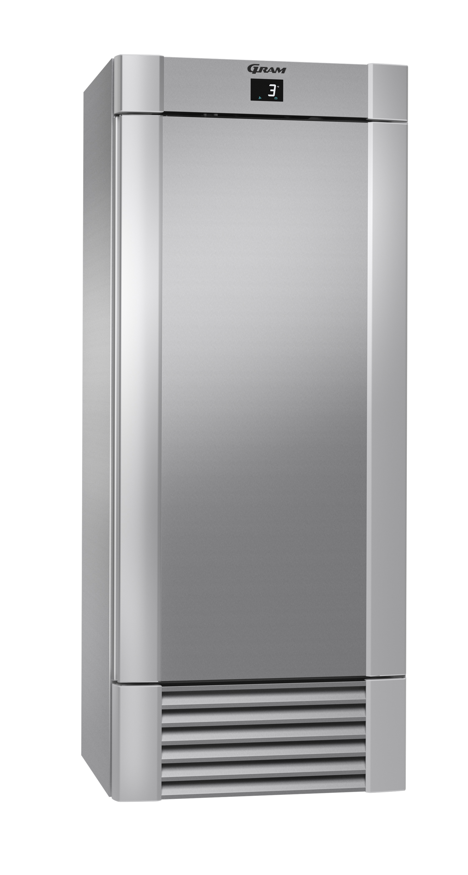 With an energy consumption of only 327 kWh/year (Energy test Ecodesign) the ECO MIDI 82 refrigerator ranks in energy class A. The Ecodesign test method records the 24 hour energy consumption and multiplies it by 365 to get the annual energy consumption (AEC). The 24 hour consumption is calculated from 2 test periods of 12 hours each. The first period has sequences of door openings while the second is a stabilization period with closed door. ECO MIDI 82 cabinets combine stylish design with high functionality and low energy consumption. • The controls are concealed behind the top panel, protected against splashing water. • Design principle of "no broken surfaces" makes the cabinets easy to clean. • The distinctive aluminum profiles stretching from top to bottom on both sides of the cabinet impart strength and enhance appearance. • The modular rails can go directly in the dishwasher. • Easy access to stored items as the storage compartment is raised 37 cm above the floor. ECO MID 82 is suitable for the 2/1 GN wide GN system where two 1/1 GN pans can be placed side by side on each shelf.