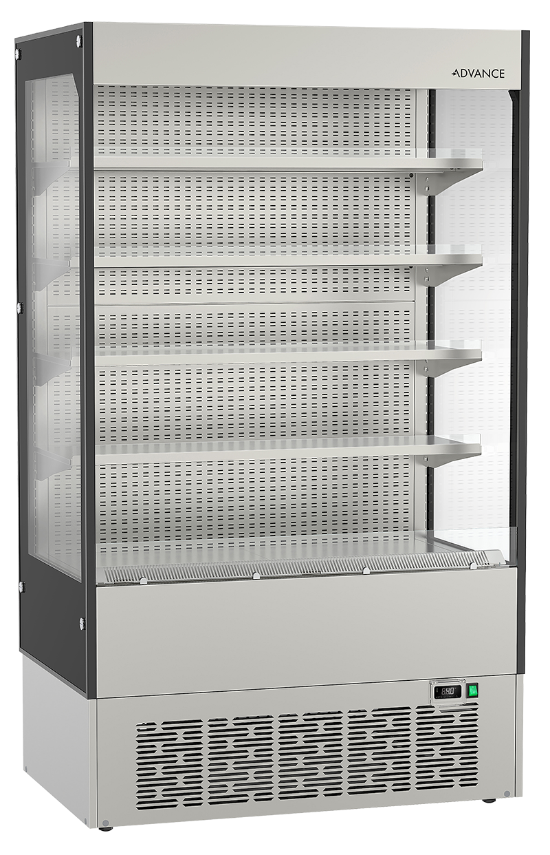 ADVANCE MD K 150 BG N E Lodówka wielopoziomowa z czarnymi i przezroczystymi szklanymi panelami bocznymi
