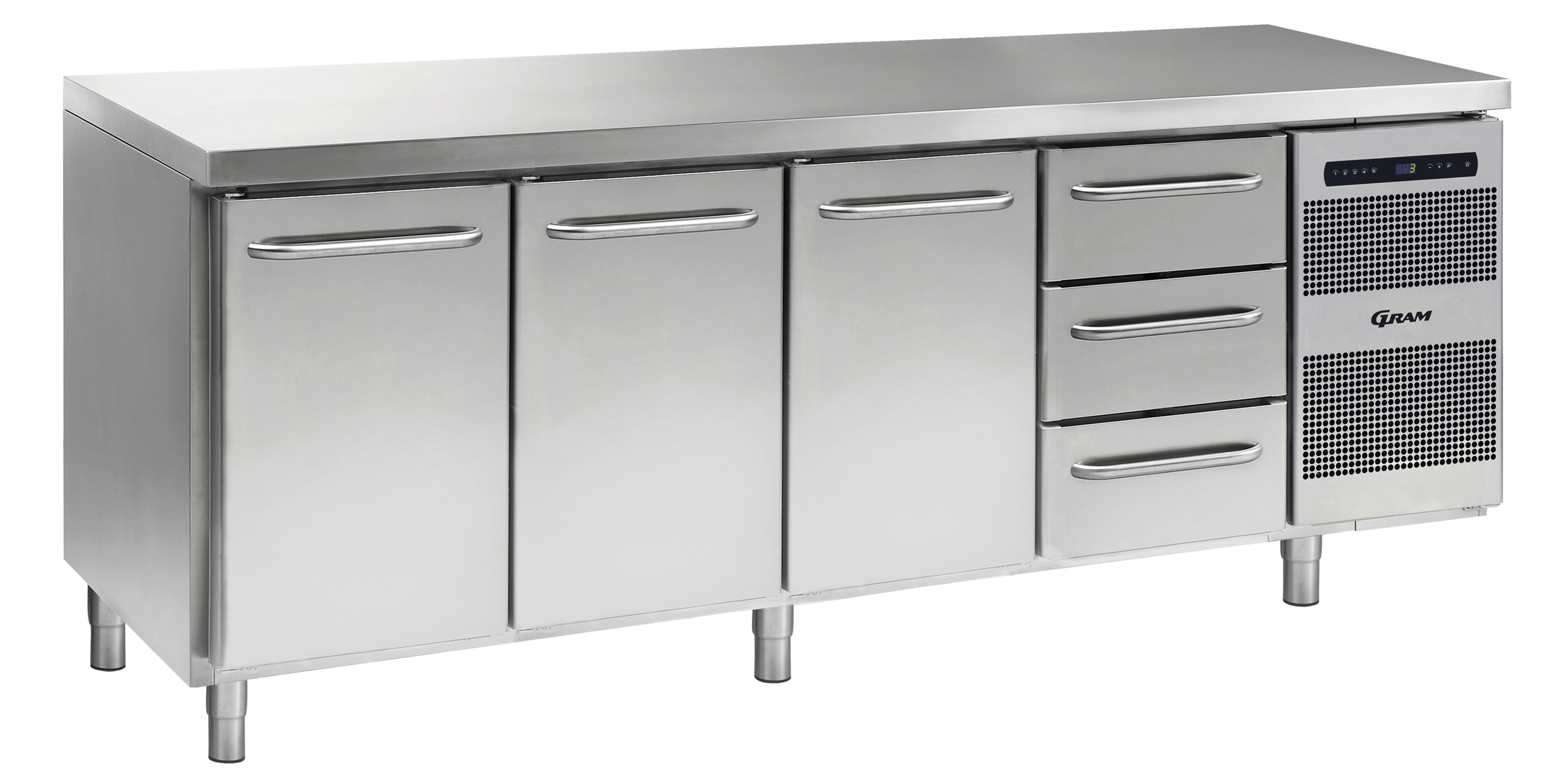 With GRAM GASTRO 07 counters you can put together your individual workplace. Choose your combination of worktop, doors, and drawers, legs /castors/electric elevation, temperature ranges and accessories.